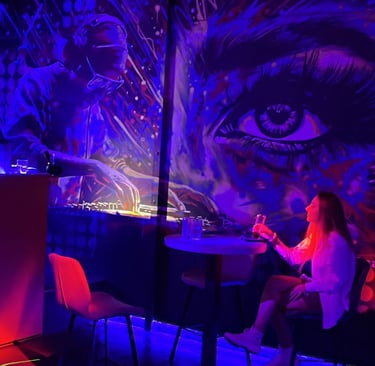 Ambient, il·luminació, innovació. Un bar musical o una discoteca pot beneficiar la seva estètica amb pintura mural.